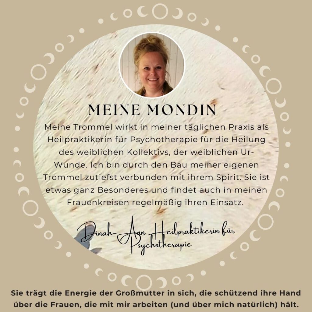 Farina hat mich so liebevoll durch meinen ganz eigenen Entstehungsprozess, der von vielen Tränen, Widerstand und großen Glücksgefühlen gesäumt war, begleitet. Dafür bin ich Dir noch heute dankbar, Farina! Die gemeinsame Einweihung der Trommel war der krönende Abschluss. Einfach nicht mit Worten zu beschreiben! Ein wunderschönes Erlebnis!