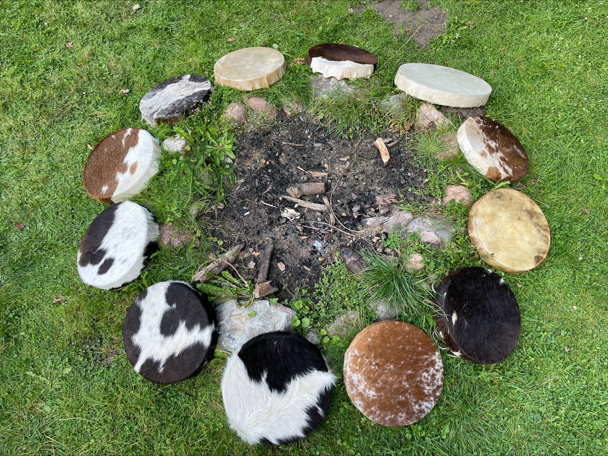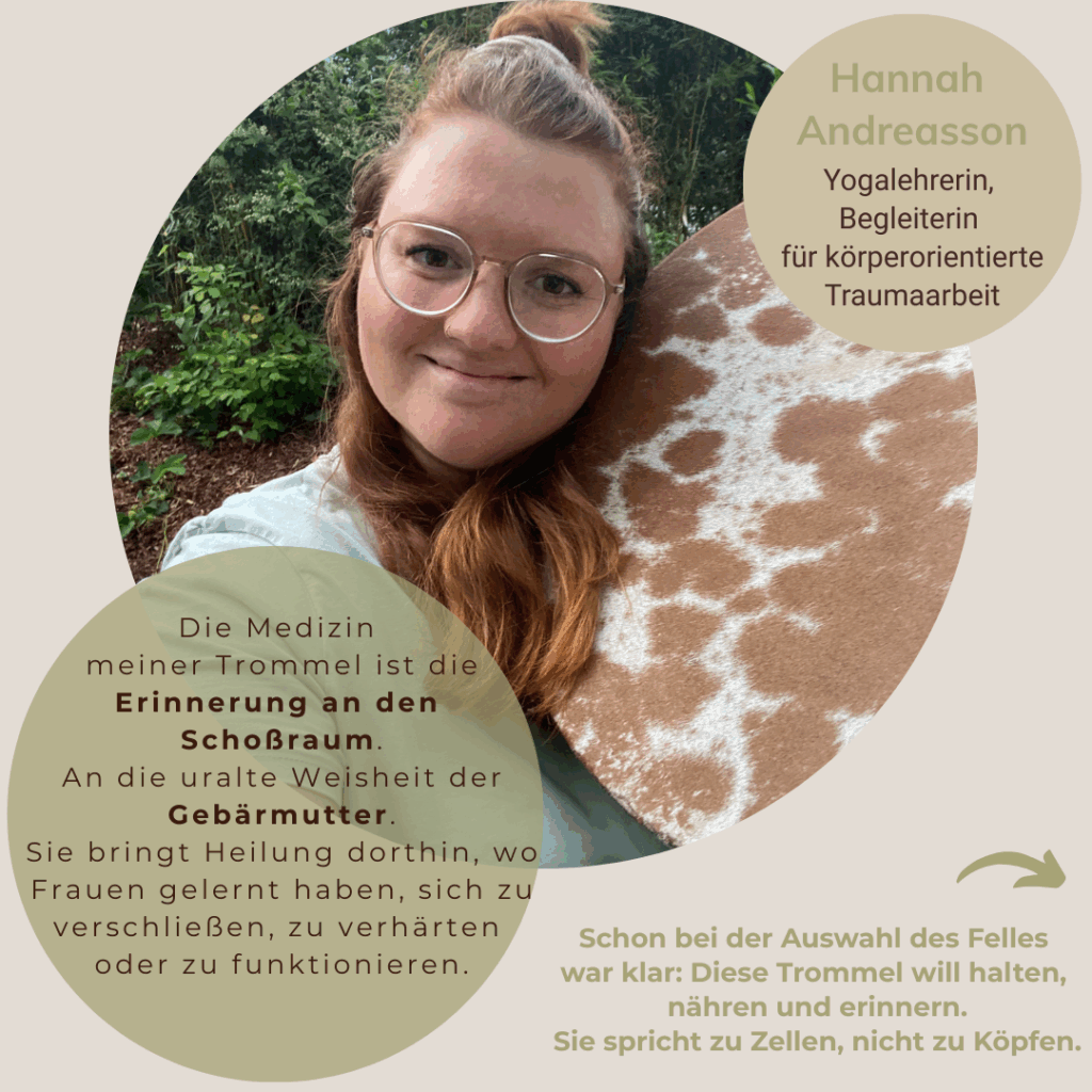 Meine Trommeln sind 2012, 2013, 2020, 2024 und 2025 entstanden, jede hat einen anderen Spirit und Klang und ihre Entstehung beinhaltete rückblickend auch immer für mich tiefgreifende initiatorische Prozesse, die sich ganz unterschiedlich angefühlt haben. Ich habe den Trommelbau selbst mehrmals in einem sehr ähnlichen Rahmen durchlaufen, bevor ich angefangen habe, ihn zu begleiten.